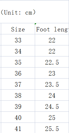 Size: 33, 34, 35, 36, 37, 38, 39, 40, 41